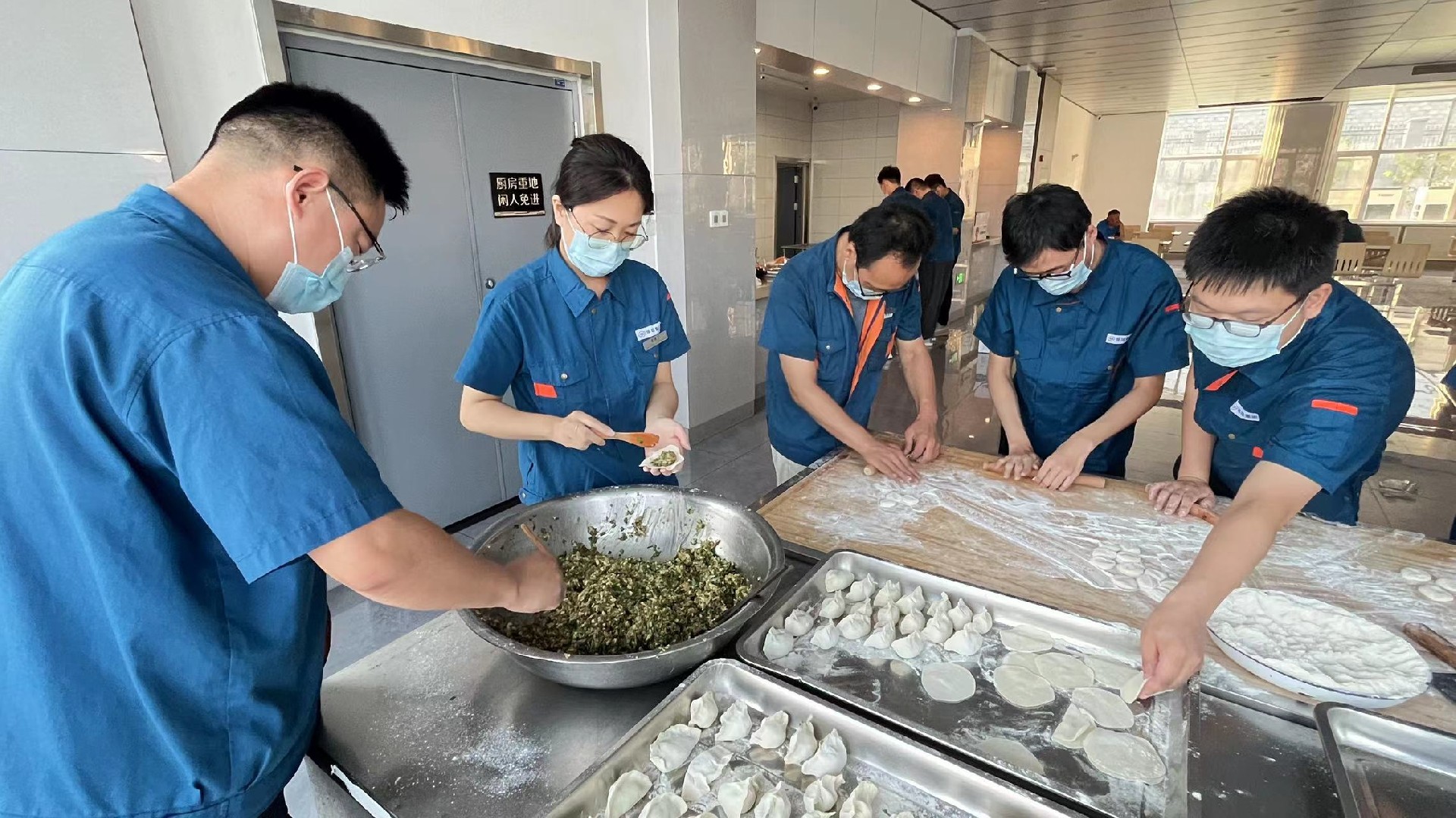 晚上,企業(yè)管理中心為導(dǎo)師及新員工們準(zhǔn)備了豐盛的歡迎冷餐會,按照膠東的習(xí)俗,每逢大事吃團圓餃子,大家一起和面,一起拌餡,一起動手包水餃。師傅們紛紛對徒弟表示:“吃了水餃,咱們就是一家人了,好好干。”師傅徒弟和公司領(lǐng)導(dǎo)相對而坐,開懷暢飲,暢所欲言,自己包的餃子格外的香。