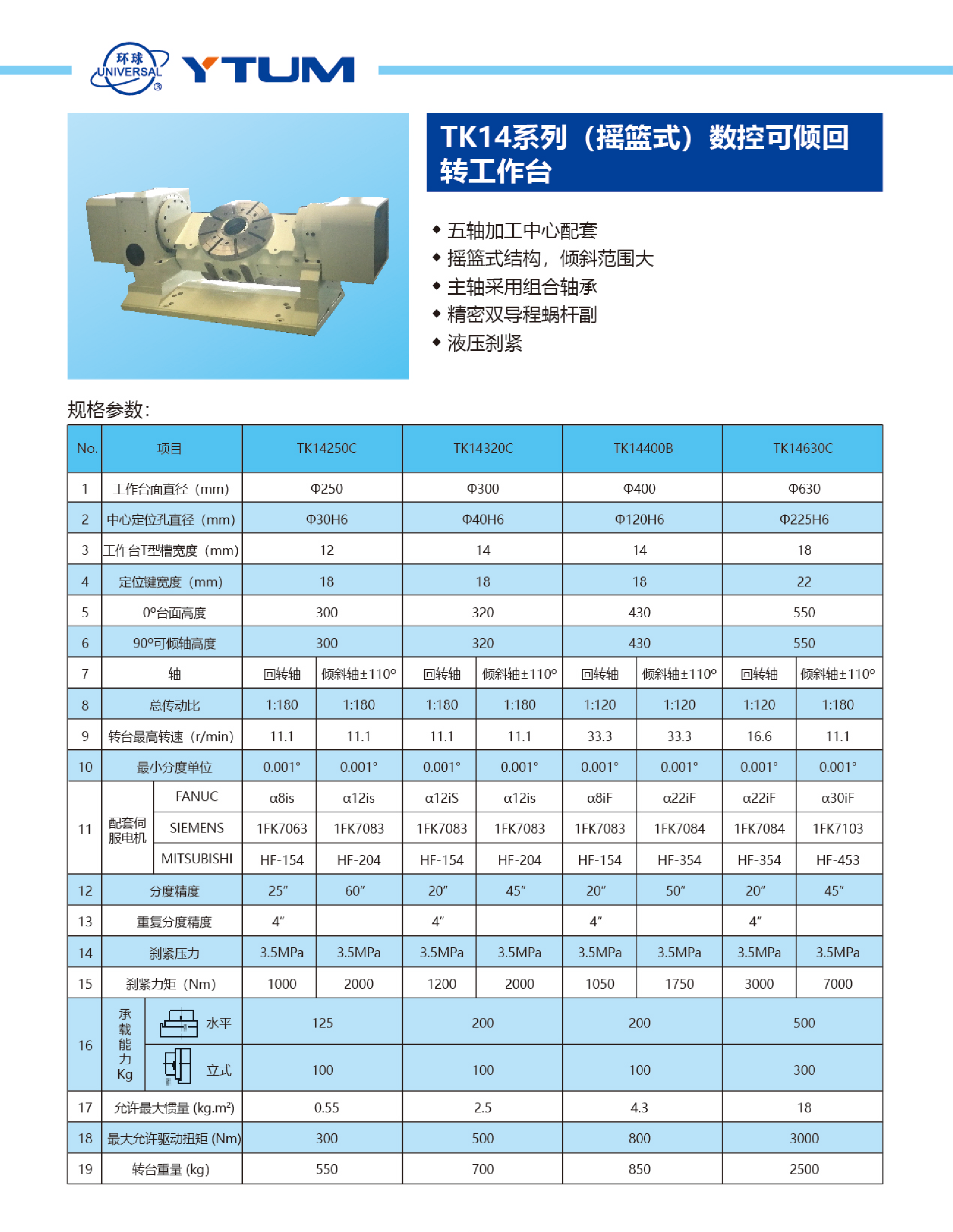 TK14系列(搖籃式)數控可傾回轉工作臺